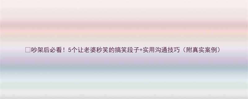 ✨吵架后必看!5个让老婆秒笑的搞笑段子+实用沟通技巧(附真实案例)