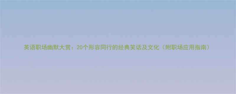 《英语职场幽默大赏:20个形容同行的经典笑话及文化(附职场应用指南)》