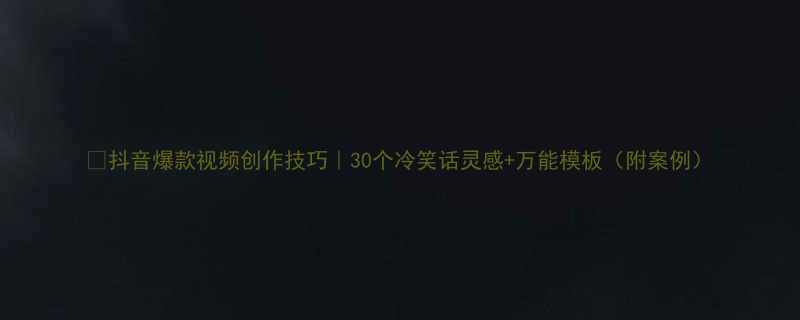 🔥抖音爆款视频创作技巧|30个冷笑话灵感+万能模板(附案例)