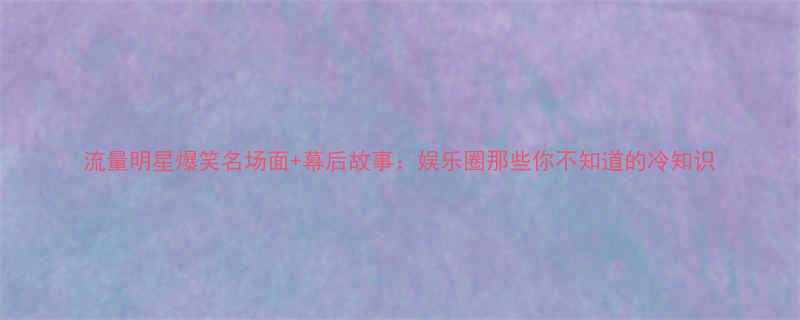 流量明星爆笑名场面+幕后故事:娱乐圈那些你不知道的冷知识