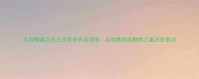 《关羽樊城之战三次致命失误深度:从战略到后勤的三重历史教训》