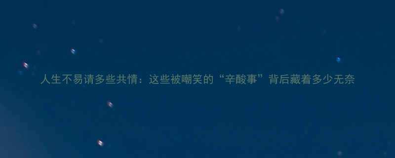 人生不易请多些共情:这些被嘲笑的“辛酸事”背后藏着多少无奈