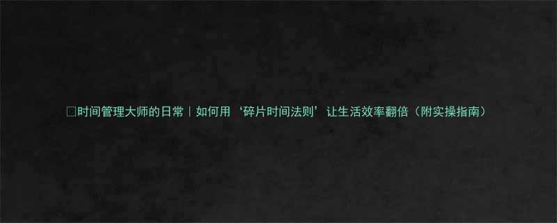 📅时间管理大师的日常|如何用‘碎片时间法则’让生活效率翻倍(附实操指南)