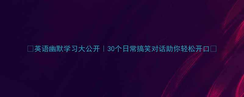 🌟英语幽默学习大公开|30个日常搞笑对话助你轻松开口🌟