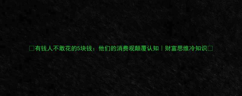 🔥【有钱人不敢花的5块钱:他们的消费观颠覆认知|财富思维冷知识】🔥