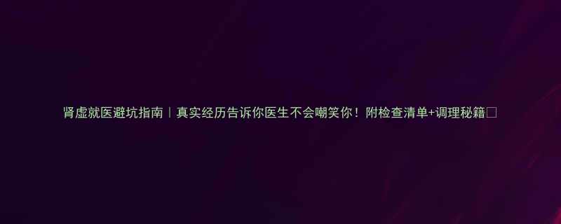 肾虚就医避坑指南|真实经历告诉你医生不会嘲笑你!附检查清单+调理秘籍🔥