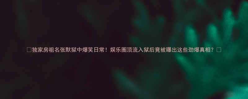 🌟【独家】房祖名张默狱中爆笑日常!娱乐圈顶流入狱后竟被曝出这些劲爆真相?🔥
