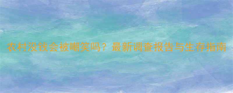 农村没钱会被嘲笑吗?最新调查报告与生存指南