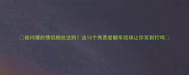 🔥被问爆的情侣相处法则!这10个"秀恩爱翻车现场"让你笑到打鸣💘