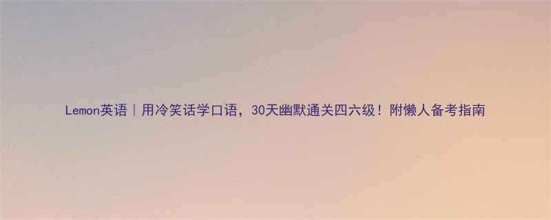 《Lemon英语|用冷笑话学口语,30天幽默通关四六级!附懒人备考指南》
