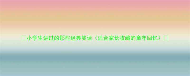 📚小学生讲过的那些经典笑话(适合家长收藏的童年回忆)📚