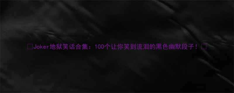 🔥《Joker地狱笑话合集:100个让你笑到流泪的黑色幽默段子!》🔥