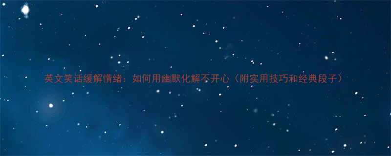 英文笑话缓解情绪:如何用幽默化解不开心(附实用技巧和经典段子)