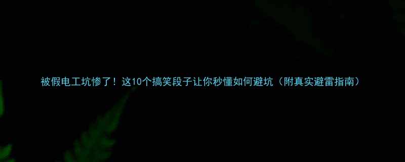 被假电工坑惨了!这10个搞笑段子让你秒懂如何避坑(附真实避雷指南)