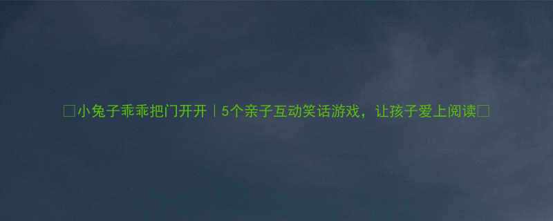 🌟《小兔子乖乖把门开开|5个亲子互动笑话游戏,让孩子爱上阅读》🌟