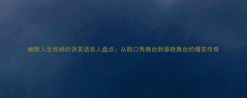 【幽默人生】姓杨的讲笑话名人盘点:从脱口秀舞台到春晚舞台的爆笑传奇