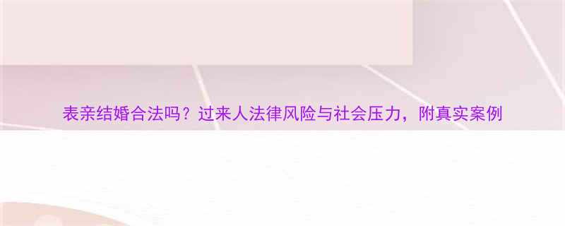 表亲结婚合法吗?过来人法律风险与社会压力,附真实案例