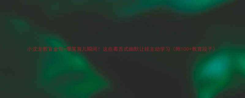 小沈龙教育金句+爆笑育儿瞬间!这些"毒舌式幽默"让娃主动学习(附100+教育段子)