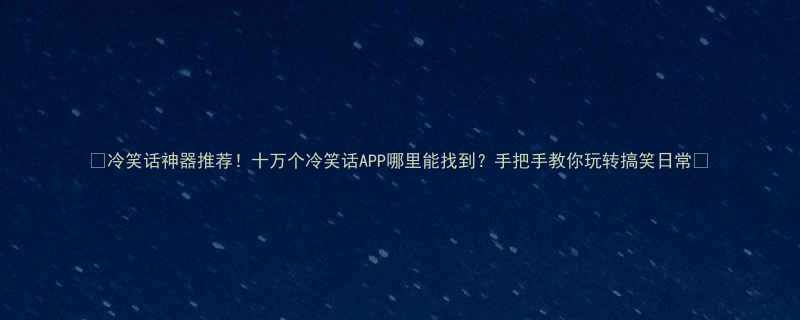 🔥冷笑话神器推荐!十万个冷笑话APP哪里能找到?手把手教你玩转搞笑日常💫