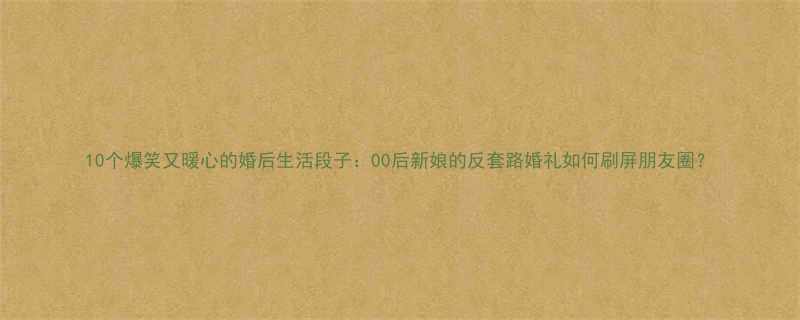 《10个爆笑又暖心的婚后生活段子:00后新娘的"反套路"婚礼如何刷屏朋友圈?》