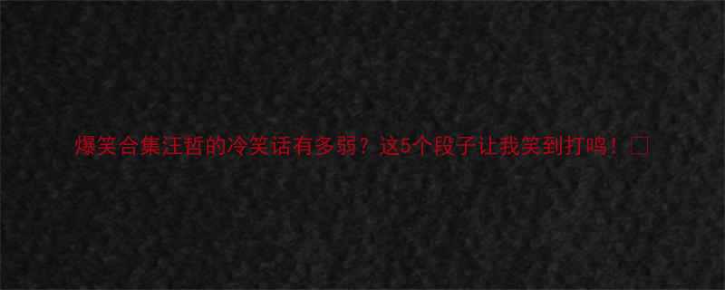 【爆笑合集】汪哲的冷笑话有多弱?这5个段子让我笑到打鸣!🤣