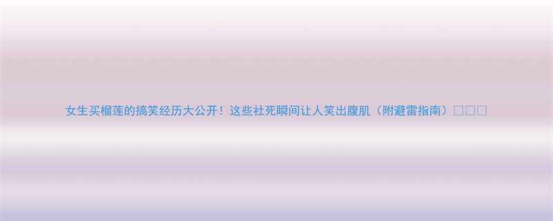 《女生买榴莲的搞笑经历大公开!这些"社死"瞬间让人笑出腹肌(附避雷指南)👩🎤🍀》