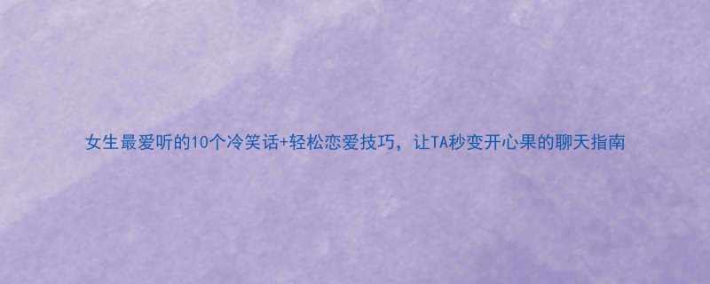 《女生最爱听的10个冷笑话+轻松恋爱技巧,让TA秒变开心果的聊天指南》