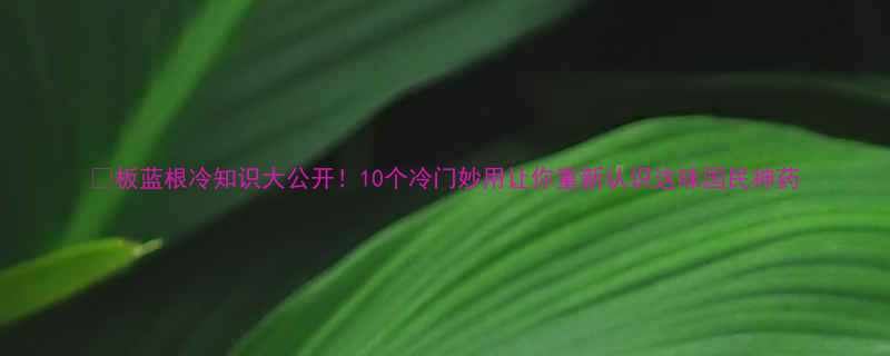 🌿板蓝根冷知识大公开!10个冷门妙用让你重新认识这味"国民神药"