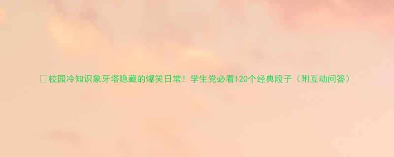 📚【校园冷知识】"象牙塔"隐藏的爆笑日常!学生党必看120个经典段子(附互动问答)
