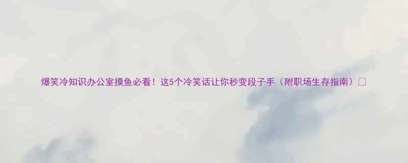 【爆笑冷知识】办公室摸鱼必看!这5个冷笑话让你秒变段子手(附职场生存指南)😂